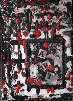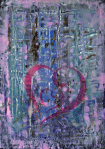 Today was one of those beautiful post-blizzard days in New England . . . just warm enough for a short walk with the Studio Pup, which meant lots of time leftover for making art. Inspiration came quickly by seeing the connections between a box of vintage postcards recently unearthed in the family attic, waking this morning from vivid dreams of abstract acrylic paintings (a sure sign I haven’t been spending enough time in the studio!), and Jane Davies’ recent blog post on the threatened closure of her rural post office. Those who have ever lived in a small town know that the local post office is the heart and soul of a village, so Jane’s plight touched the hearts of artists around the world. Jane is a well-known mixed-media artist and teacher with a generous and whimsical spirit, so the overwhelming response so far is not surprising and certainly well-deserved!